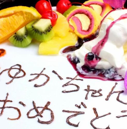 メッセージプレート承っております。誕生日や記念日にGOOD♪フルーツやデザート付なので豪華!